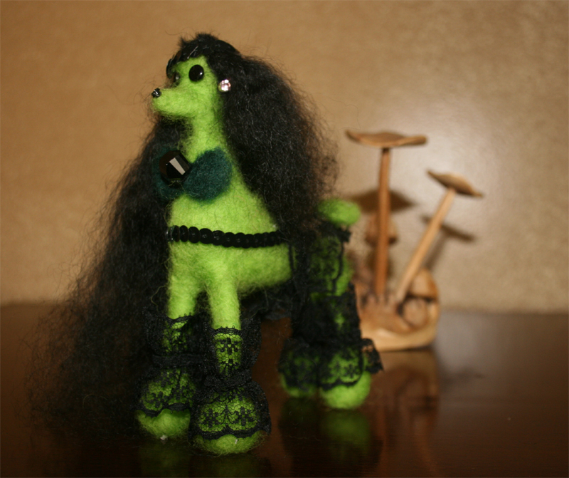 Good grooming is important for all dogs, but it is absolutely essential for poodles. A well-groomed Poodle will not only look her best, good grooming helps prevent skin, coat, dental and other health problems. It is often said “Poodles are non-shedding and hypo-allergenic.” Well, poodles do shed, but the loose hair stays in the coat rather than falling out in the house. In order to keep your poodles coat from becoming a matted mess, you must brush and comb her several times a week. By doing so you will collect a never-the-end supplies of hair for your felting projects and bond with your dogs forever!